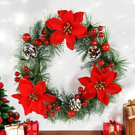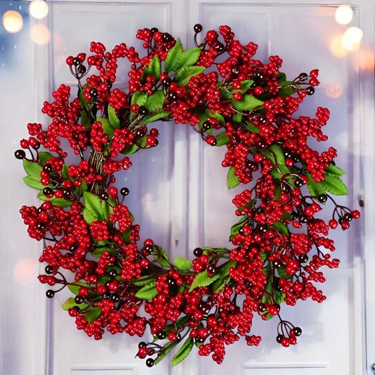 Festive Christmas Wreath with Red Berries for Indoor & Outdoor Use - 18" x 18"