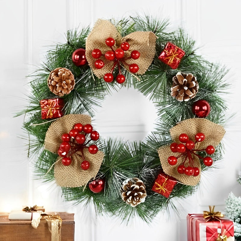 Our Christmas wreaths are crafted from high-quality, weather-resistant materials, ensuring it stays vibrant and full throughout the season. Whether used as an indoor or outdoor Christmas wreath, it requires no special upkeep—just hang it up and enjoy a hassle-free, long-lasting holiday display.