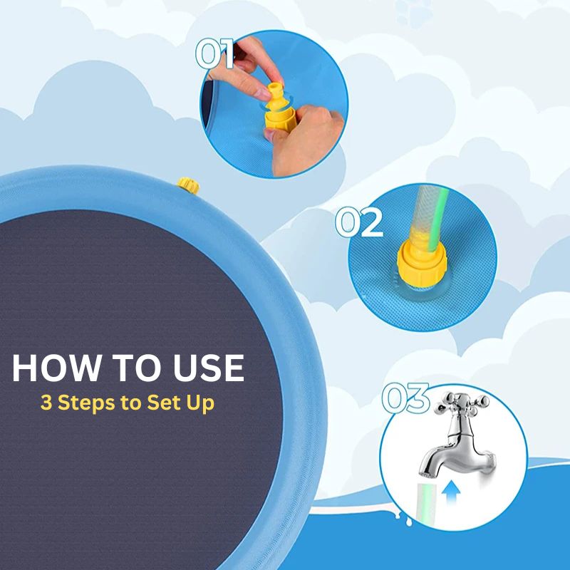 Our Dog Splash Pad works by connecting to a standard garden hose, creating a refreshing and fun water play area for your dog. The non-slip surface ensures safety, while the durable material prevents punctures and leaks.