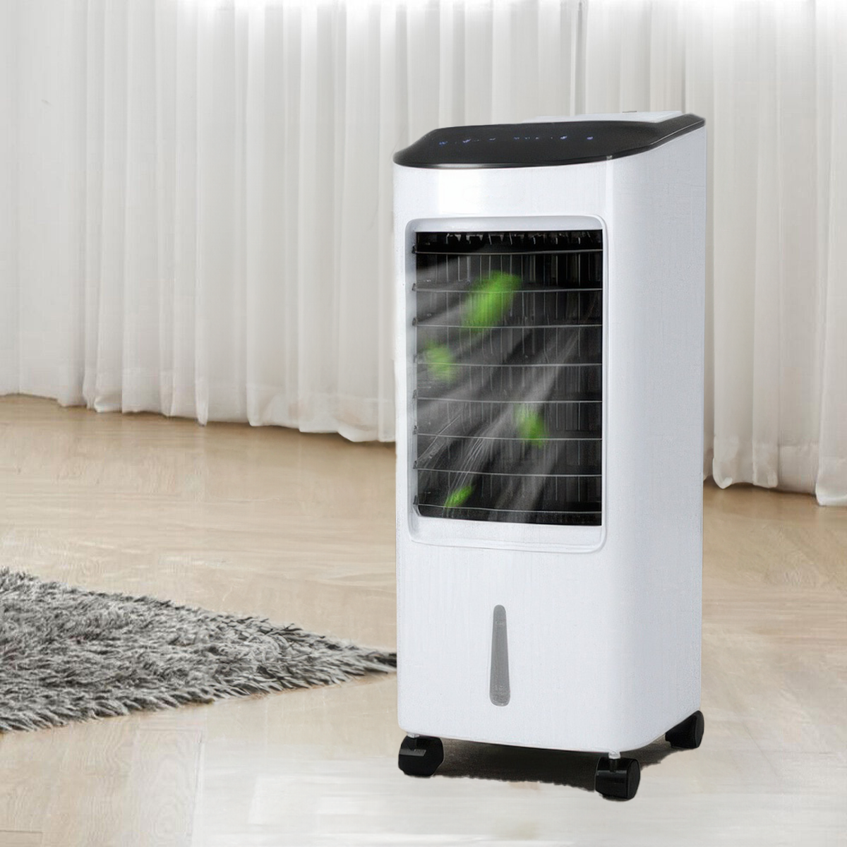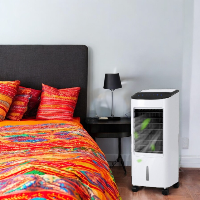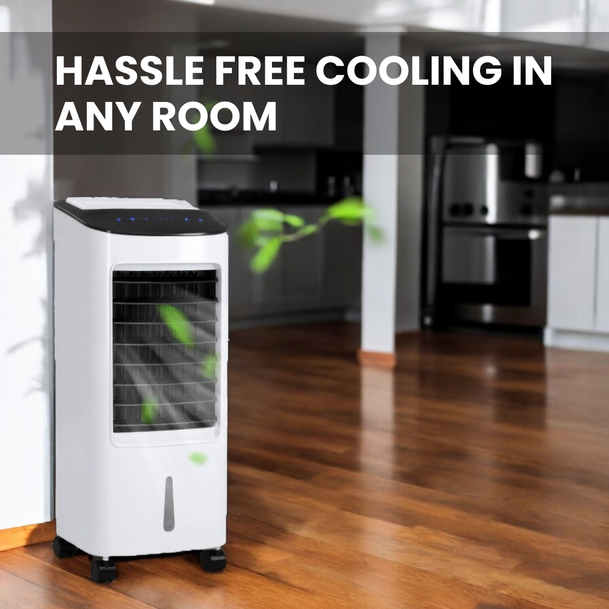 EASY TO MOVE AND STORE AWAY: This lightweight air cooler is easy to move from room to room with its wheels.