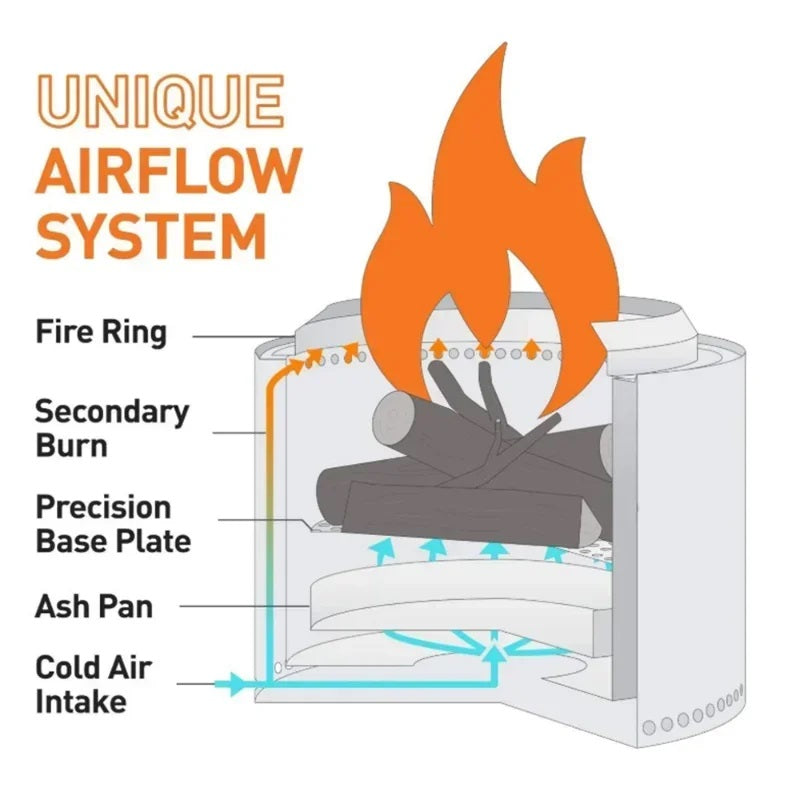 Our Smokeless Fire Pit uses 360° airflow technology to super-heat air and eliminate smoke before it reaches you, ensuring a clean and comfortable fireside experience without odors or teary eyes.