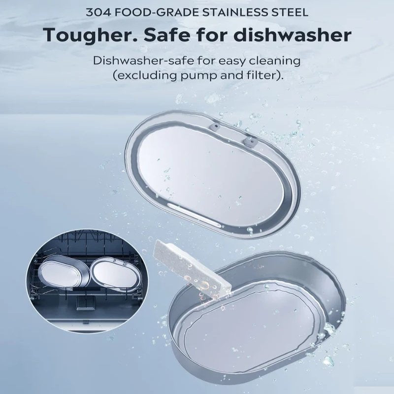 Our Cat Pet Water Fountain, crafted from 304 food-grade stainless steel, ensures long-lasting durability and superior hygiene. The sturdy construction keeps water uncontaminated and safe for your pet, while the dishwasher-safe design (excluding the pump and filter) makes cleaning effortless. With this best cat water fountain, maintaining a fresh and pure water source for your cat is simple and convenient.